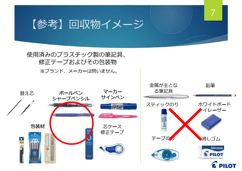 使用済みペンリサイクル(株式会社パイロットコーポレーション)
